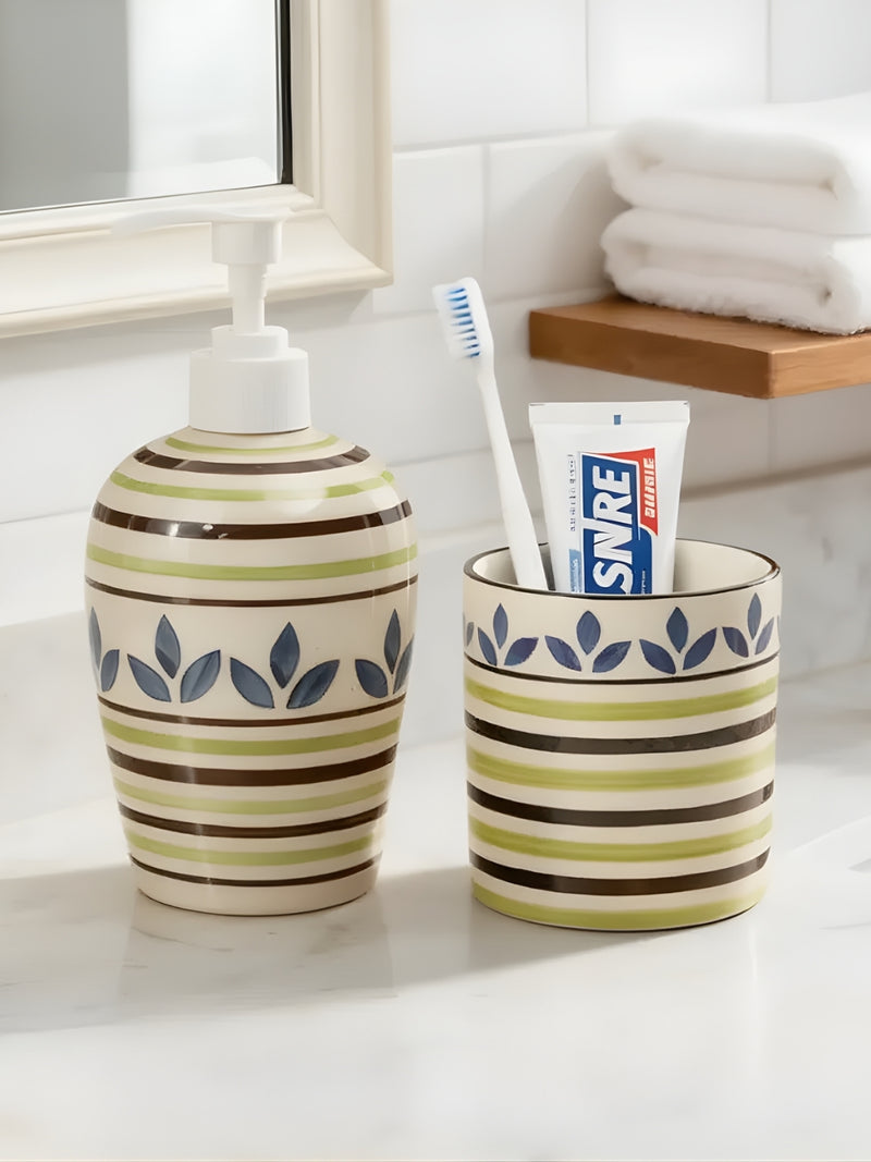 Blue Leaf Blue Ceramic Bathroom Accessories Set- Soap dispenser with Tumbler
