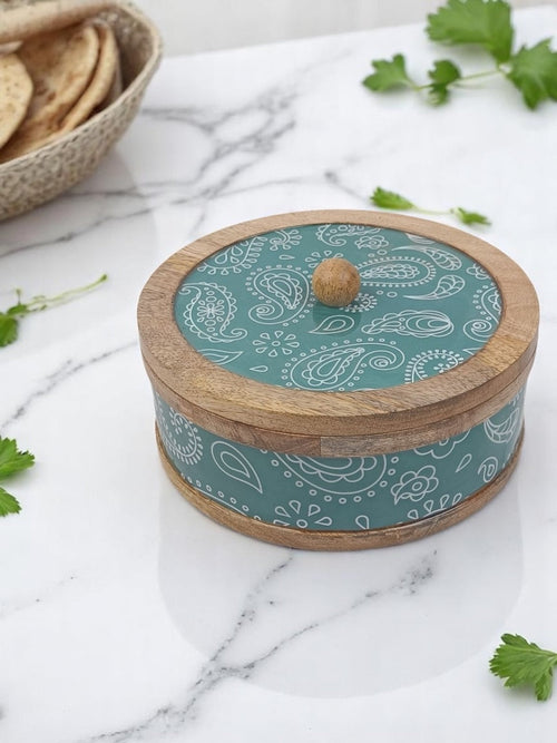 Make your dining experience memorable with our Sheesham Wood Enamelled Casserole Chapati Box / Multipurpose Storage Box.