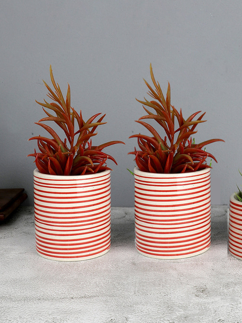 Parikrama Red Spiral Ceramic Planters Set of Two - Large