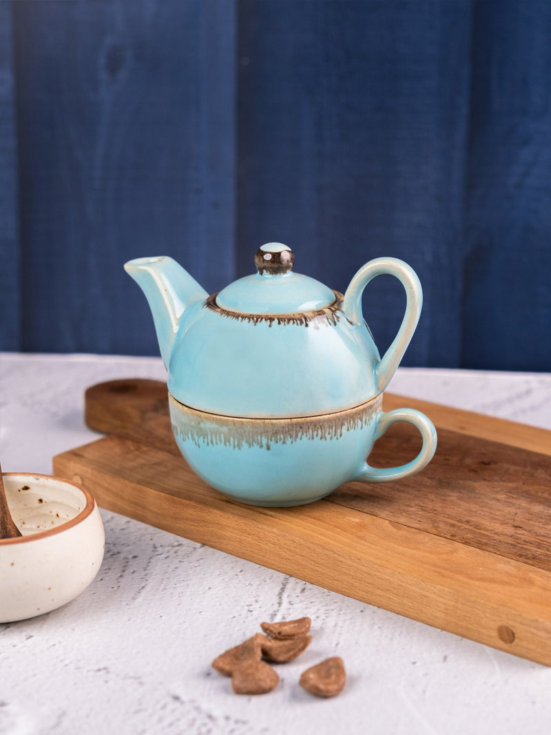 If anything is the most desired and the most sought after, in today’s world, it is peace and satisfaction. Each of us in today’s fast-moving world is looking for serenity, quiet and tranquillity. Imagine yourself in a hammock on the side of the ocean on a quiet day or sitting under a starry sky, listening to the crickets. The calmness and soothing feeling that such beautiful things in nature bring to us, inspired our latest collection – Tranquil Mint. Nature and its magical beauty are exhilarating for the mind, body, and soul. The soothing pastel shade of Mint invokes in you a feeling of deep quietude or composure. This beautiful shade also brings with it a class and style that is unmatched. VarEesha’s Tranquil Mint is an ode to elegance and peace. The series features a number of dining accessories, dinner ware and serve-ware that will enhance your home collection even more. Hand crafted and hand painted uniquely, each of the pieces tells a different tale. Embossing, painting, riveting and glazing, all techniques put together bring forward wonderful, lovely ceramic bowls, dishes and platters. Since each is hand painted, the shade, shape, pattern and border might differ from the image as seen on your desktops. But don’t worry, such imperfections just add to the beauty and authenticity of the piece. Each of these is microwave safe and dishwasher safe and also makes the perfect gift for special occasions like housewarming or anniversaries. Tranquil Mint Ceramic Kettle with Cup is a part of this beautiful series. Set contains one teapot with matching cup that fits below it. The kettle and cup have capacities of 275 and 150 ml respectively.