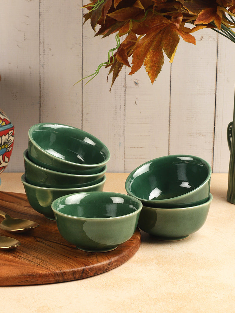 Glossy Green Hand Painted Ceramic Veg Bowls Set of Six
