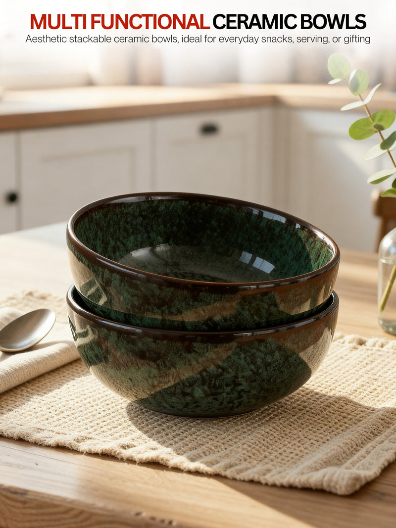 Foliage Green 6 Inch Ceramic Serving Bowls Set of 2
